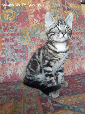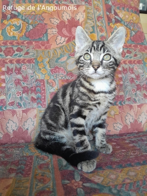 Situation: Adopté (e) sexe: Mâle Date de naissance: 2025-04-15 Date arrivée: 2025-05-24 Identification : 250269101332766 Informations complémentaires: Aston est un chaton mâle heureux. Très joueur, il fonce comme une fusée vers ses jouets, ses sœurs, sa gamelle. Il adore transporter un petit jouet dans sa gueule comme un fauve transporte sa proie. C'est un véritable félin miniature. Il est habitué aux enfants et aux chiens et sait rentrer ses griffes pour jouer. Adoption: 2025-07-29